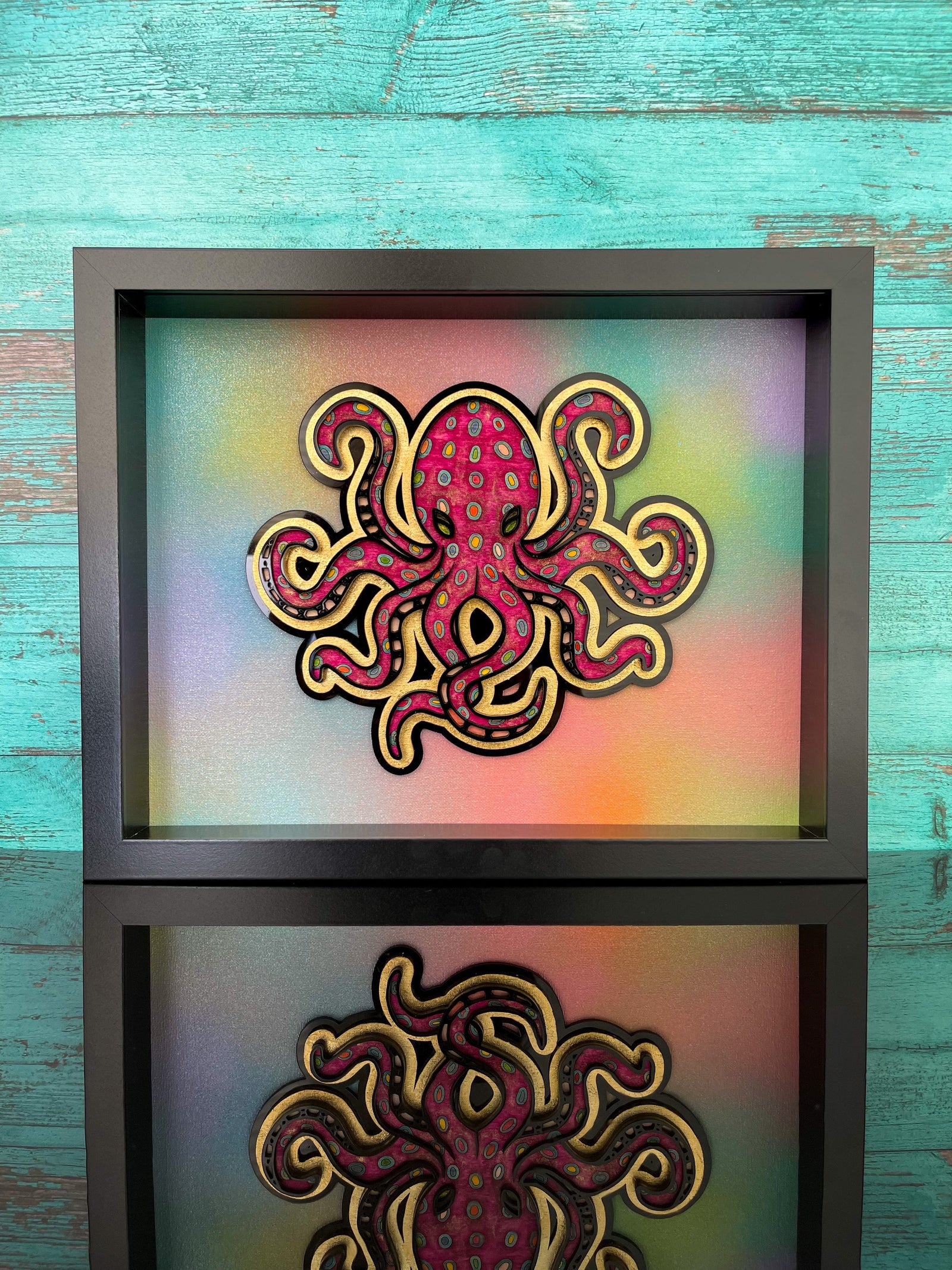 Blue-Ringed Octopus Ink, Aerosol, Laser Cut Acrylic & Wood 11x14 inches Note: This item is currently on display and will not be shipped until July 15th...